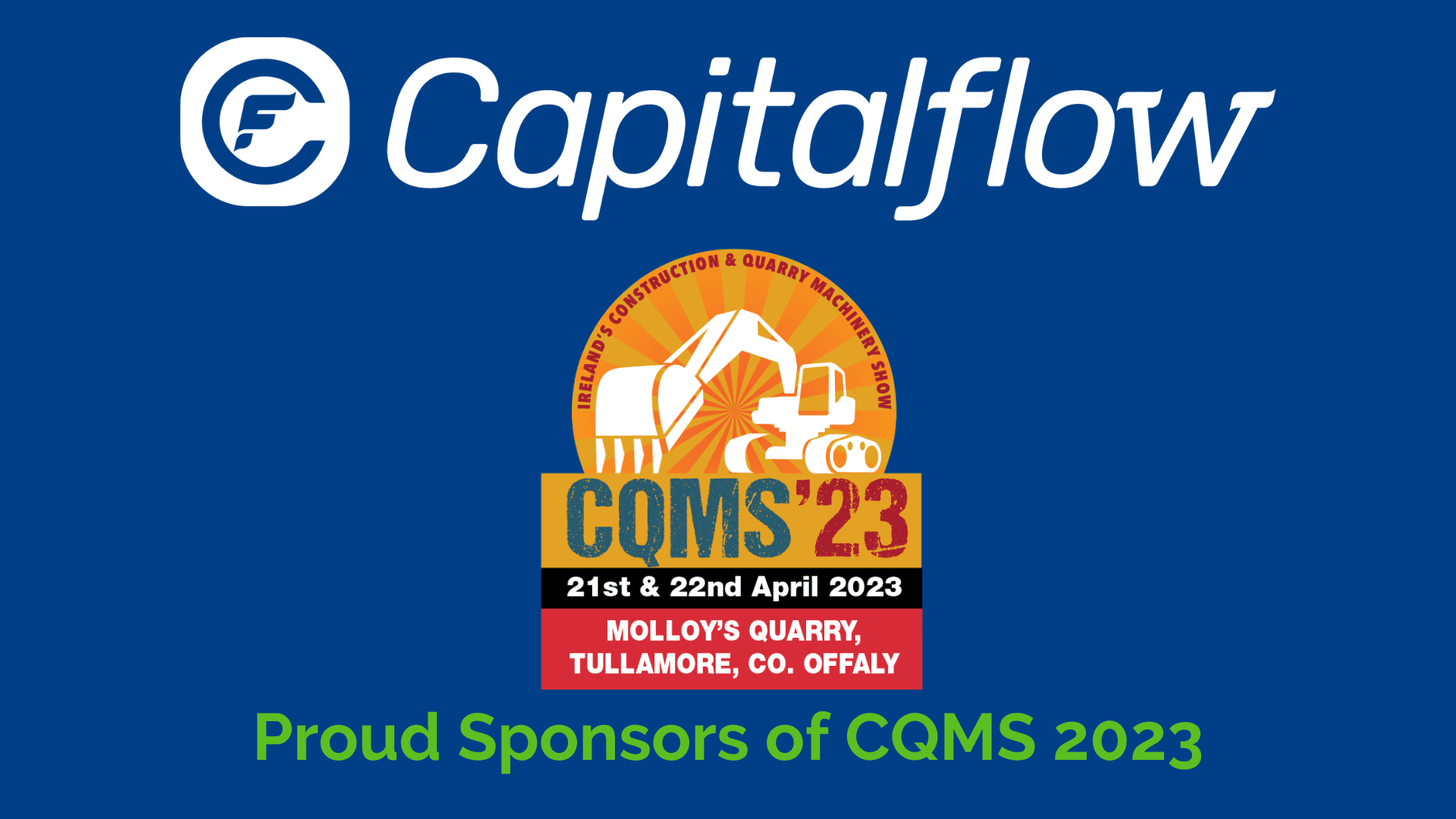 Capitalflow is delighted to be named as the main sponsor of CQMS ’23 – Ireland’s Construction and Quarry Machinery Show taking place in Tullamore on 21st & 22nd April